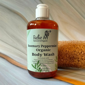 Experience the cool evening breeze of your favorite beach with the rustic art organic rosemary peppermint body wash. Lemon, Peppermint and Aloevera awaken your body of its slumber, making you ready for the oncoming day! Rosemary along with clove is your best friend when it comes to reducing body acne, blemishes and dark spots while improving the complexion skin texture. Lemon peel oil, peppermint oil create a citric medium for thorough cleansing making sure you come out of your shower glowing. Tamarind, clove and Aloevera is the best tag team to have nourishment and healing in a box. They reduce inflammation, itching and odour while hydrating the skin. Coconut, Peanut, Castor oils with Cacao Seed butter and glycerin moisturize the skin while ensuring deep cleansing and nourishing. Every shower is a soap opera!