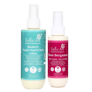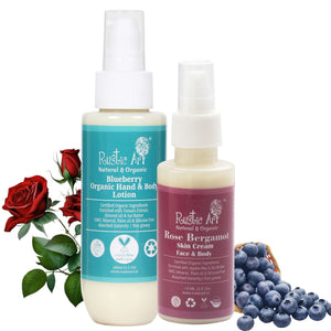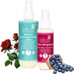 फेस एंड बॉडी मॉइस्चराइजर - रोज बर्गमोट फेस क्रीम और ब्लूबेरी बॉडी लोशन