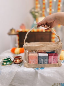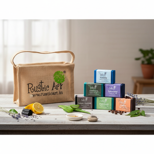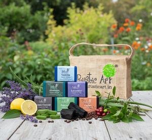 Organic Soaps Gift Set, Pack of 6 Soaps | Lavender, Coffee, Aloe Vera, Vanilla, Patchouli, Lemon Charcoal | Jute pouch