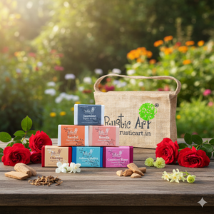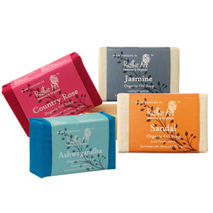 Fragrance of India | Organic Soaps Gift Set, Pack of 6 Soaps | Sandal, Jasmine, Champa, Kewda, Country Rose, Ashwagandha