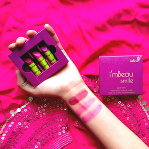 i'mBeau स्माइल क्रेयॉन आपके कोमल टिशू को 'पोषण' देने के लिए एंटीऑक्सीडेंट से भरपूर वनस्पति रंगों, विटामिन सी, विटामिन ई, और चेरी से चुने गए वनस्पति तेलों और मक्खन से तैयार किए गए हैं। वे धूप, नमी और अन्य आवश्यक चीजों को मेकअप की परतों के माध्यम से आरपार छान कर आने देते हैं ताकि लगाने के घंटों बाद भी त्वचा को 'सांस लेने' में मदद मिल सके। और इसलिए, 'मुस्कान' को धोने के लिए किसी मेकअप रिमूवर की आवश्यकता नहीं होती है। यह भारत का पहला ऑर्गेनिक लिप टिंट है जिसे विशुद्ध रूप से वनस्पति रंगों से तैयार किया गया है।