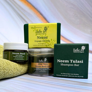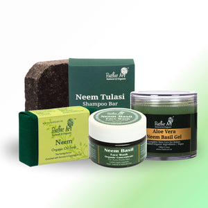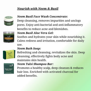 Bring balance to your skin, scalp, and soul with the Neem Basil Holistic Essentials combo — a powerful quartet infused with the ancient healing properties of Neem, Basil, Tulsi, and Aloe Vera. Designed to deeply cleanse, detoxify, and calm, this combo is your go-to for a holistic self-care ritual that is gentle, effective, and 100% toxin-free.